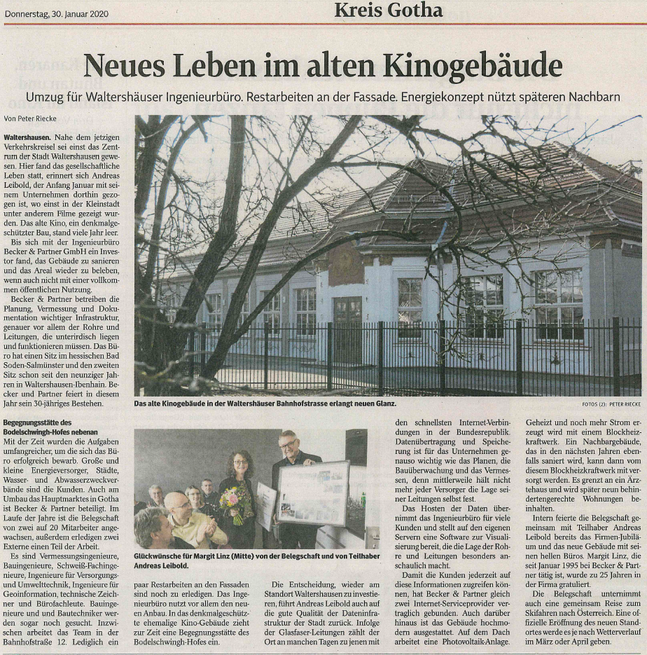 Wir sind umgezogen. Neue Räume und modernste Technik bieten sich unseren Mitarbeitern am neuem Standort in der Bahnhofstraße 12 in Waltershausen. Seit dem 15.01.2020 ist der Umzug von der Ibenhainer Straße in das modernisierte Gebäude inmitten von Waltershausen vollzogen.